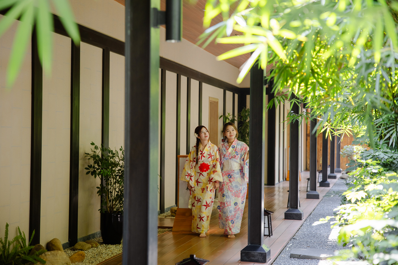 - Mượn Yukata miễn phí: Khoác lên mình bộ trang phục truyền thống Nhật Bản và chụp ảnh tại vườn tùng, bờ hồ hay những căn villa mái ngói.
